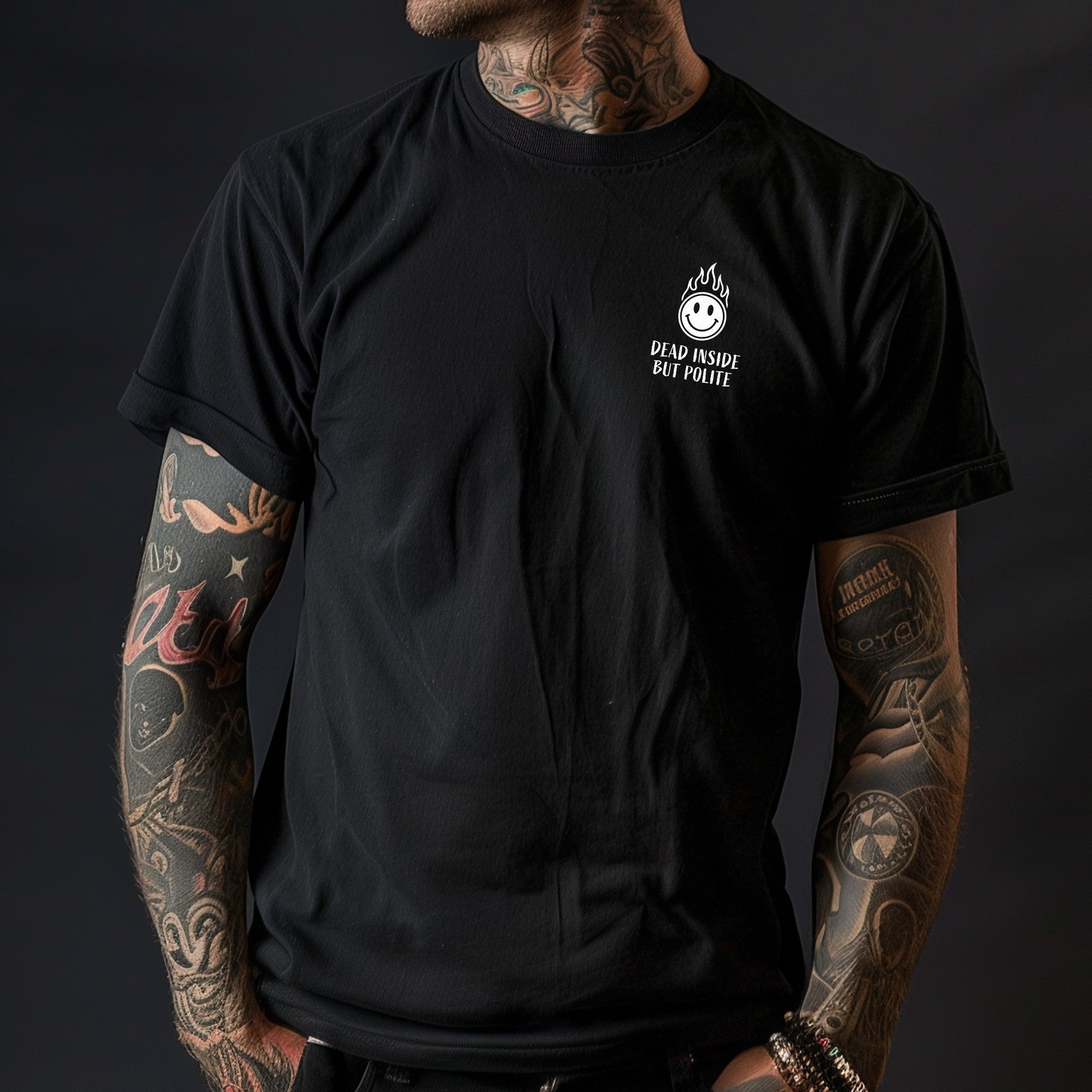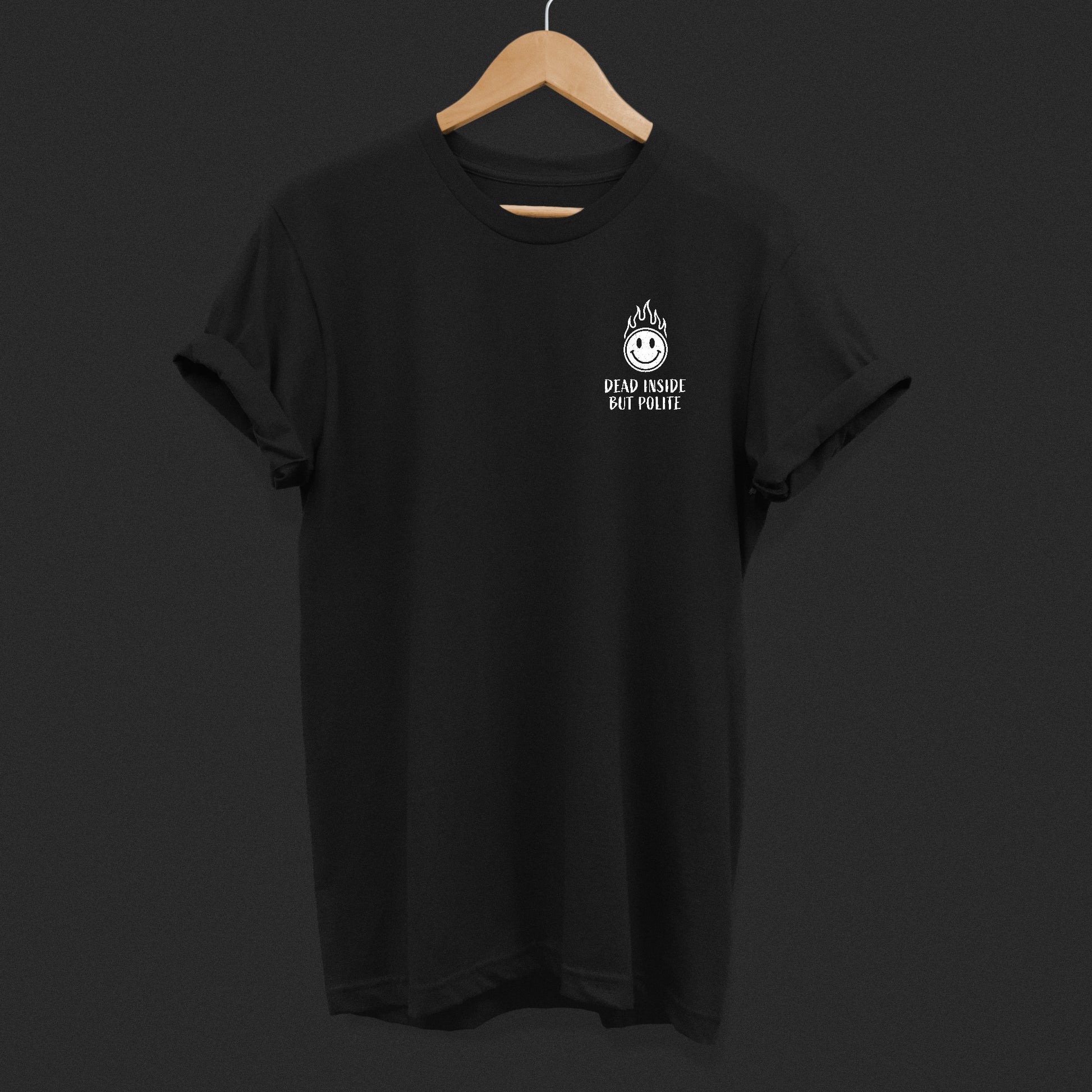 A burning smile for a burning world — this design blends dark humor with raw honesty. The burning smiley face turns quiet despair into rebellion, making it the perfect shirt for anyone who’s done pretending everything’s fine.